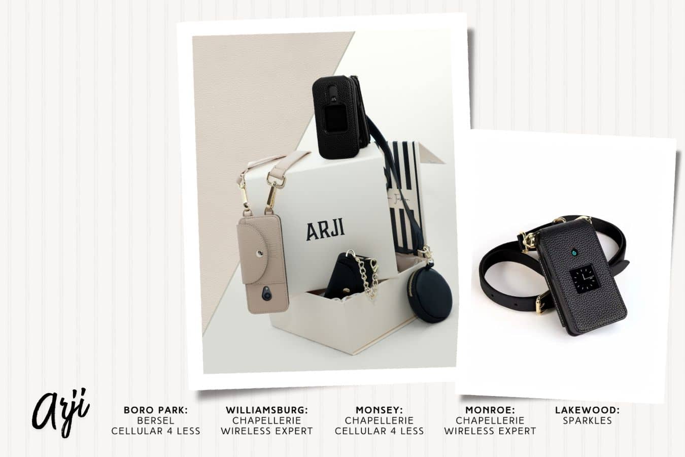 Available for QIN, TCL FIG 2, AND POM phone models. Presented in a signature Arji gift box