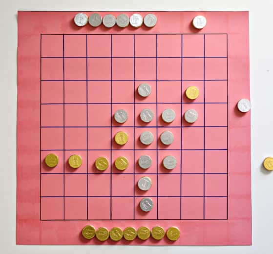 Menorah Mastermind – one person does a menorah pattern behind a box