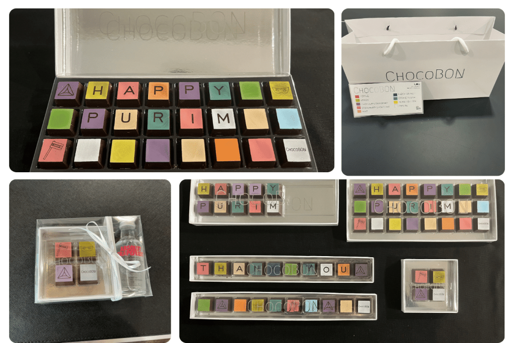 Celebrate Purim with ChocoBON! ChocoBON features gourmet flavor-filled dark chocolate squares in nine signature flavors. There’s two great complete mishloach manos options to choose from or add their Chocolate box to your Purim theme! Make it personal with a Custom Cookie or personalize a message in one of our various chocolate box sizes.