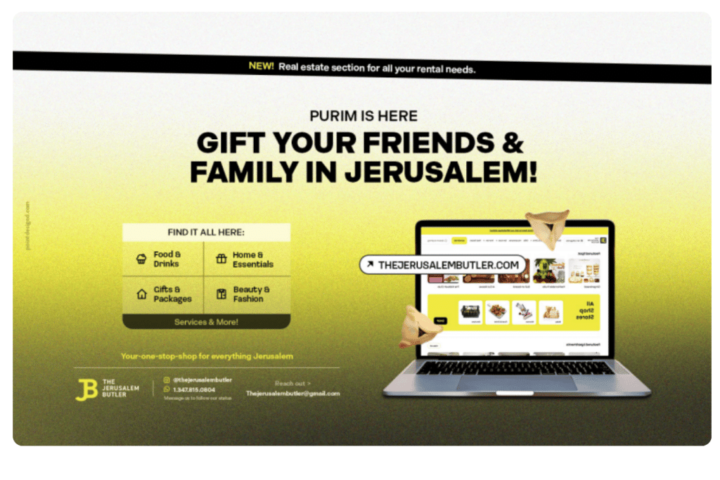 That includes everything gifting, including food gifts and mishloach manos. Whatever you need to send in Israel, you’ll find it.