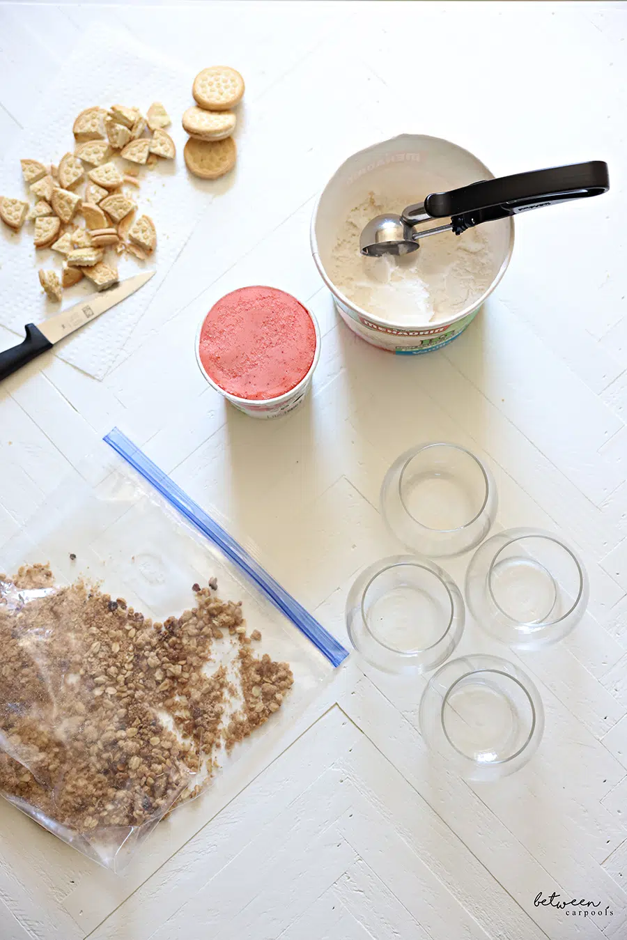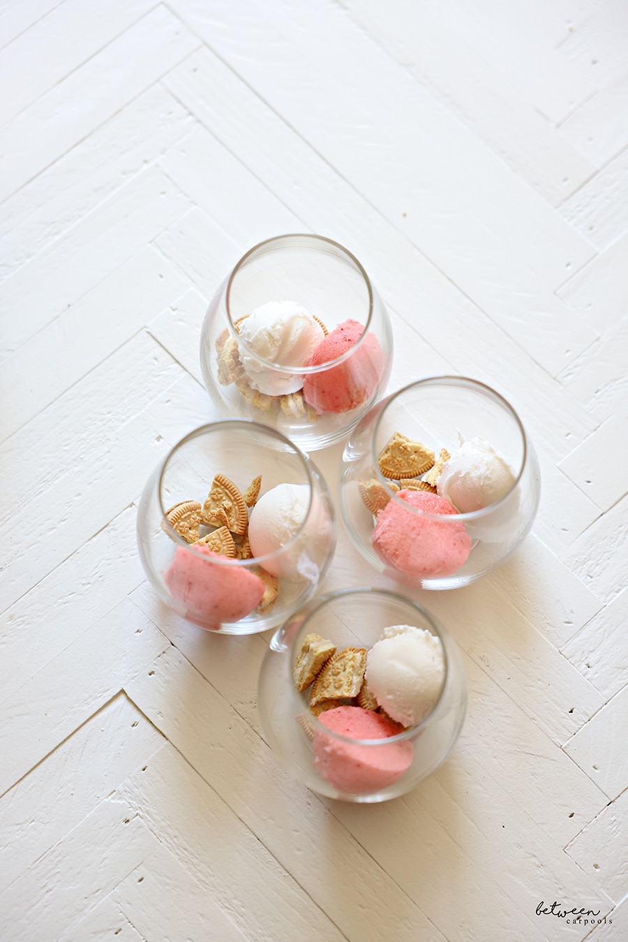 If assembling the cookie + scoops in advance, store the cups in their original packaging for neat stacking in your freezer!