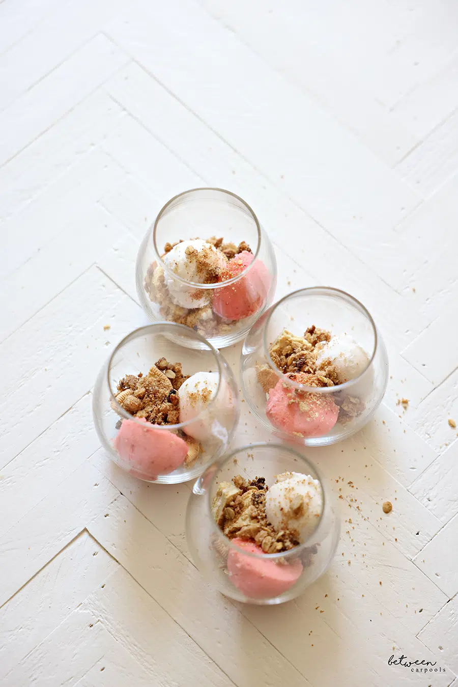 - 1 (56-ounce) container vanilla ice cream (we like Abe’s for pareve)