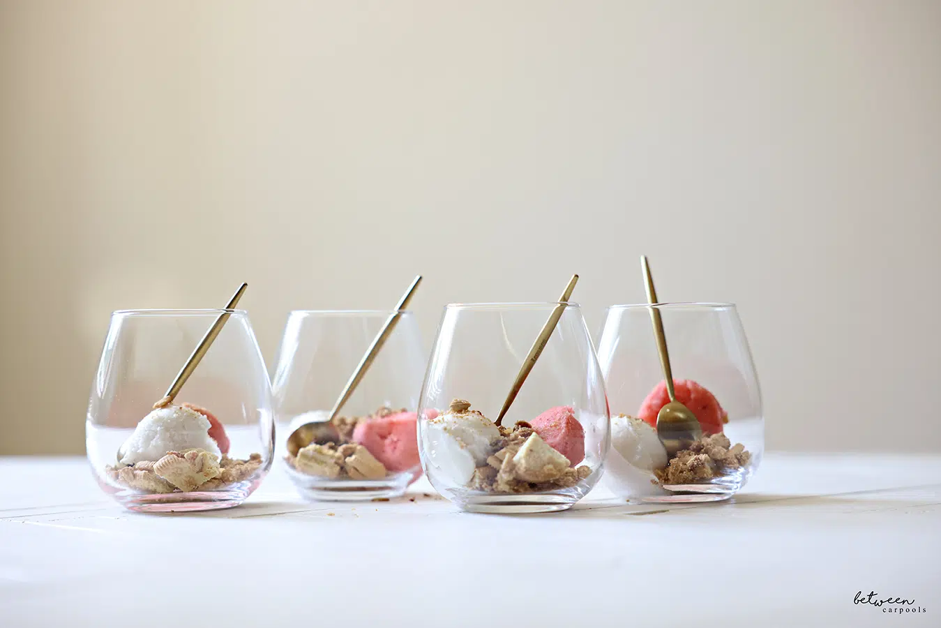 Note on Sorbet Flavors: I personally only buy Jewish brands of raspberry sorbet, because, you know, “raspberries.” Since this recipe was published, Klein’s no longer makes the raspberry flavor (it is available from another Jewish brand, Gusto Buono Glidini from Italy). However, I really don’t stick to one flavor of sorbet. I use any flavor that I please–my top go-tos are mango (always), strawberry, passion fruit (personal preference, not kid preference), and coconut (heavier). Cream sorbets are also spectacular in this dessert (but they really don’t need these embellishments). I often buy two flavors and mix it up.