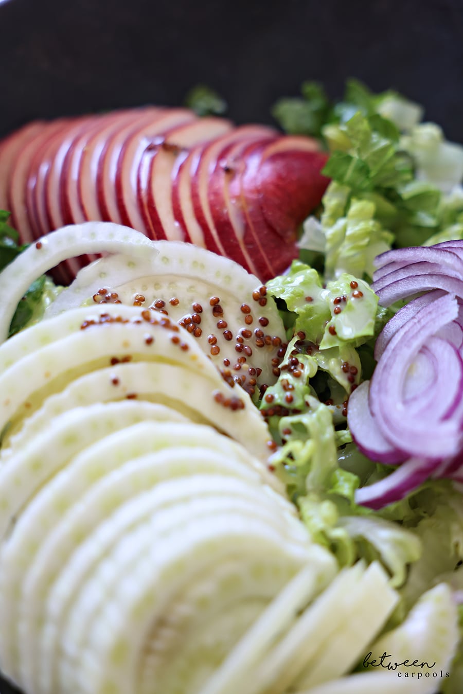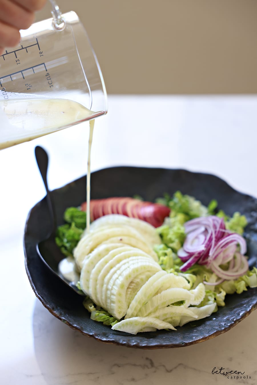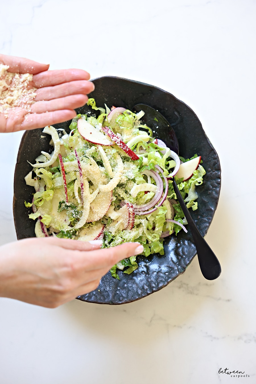 The parmesan flavor here really gets everywhere. And if you’ve never used fennel before, why not try it now? It’s really not scary. That’s what gives this salad the refreshing, crunchy twist.