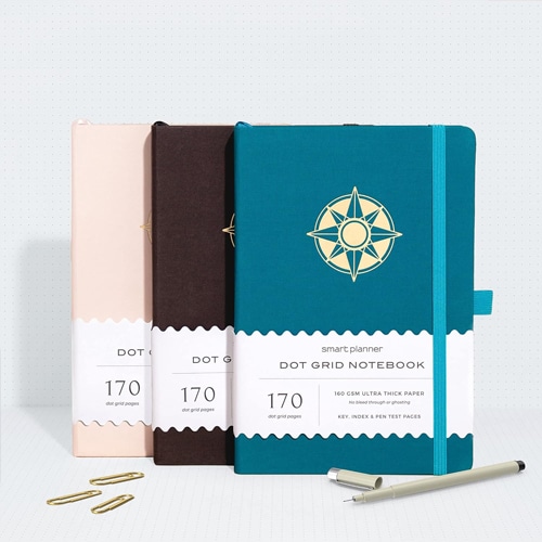 - A notebook. A classic bullet journal will have a faint dotted grid in the background, but any notebook will do.
