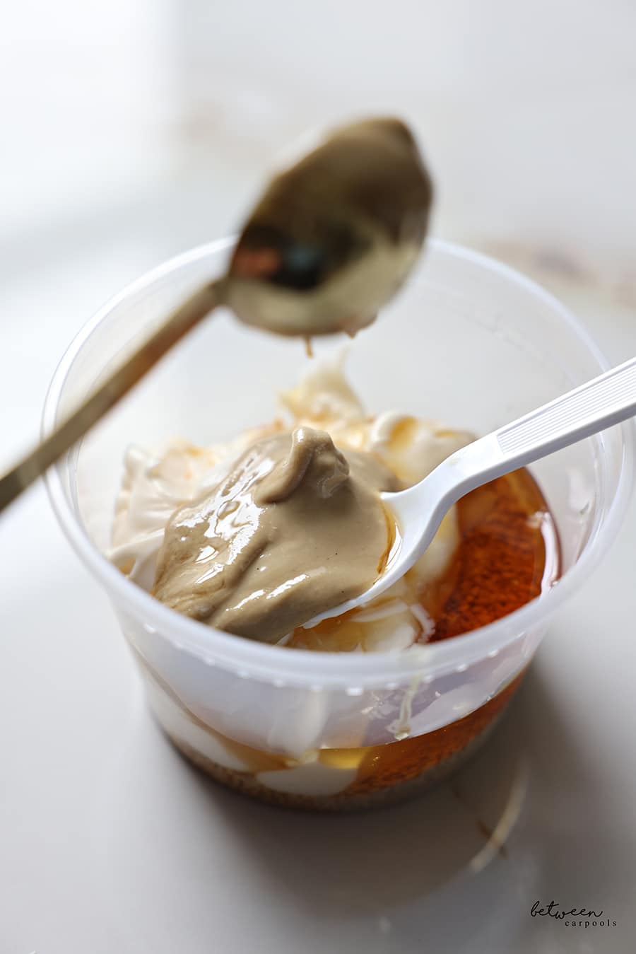 I don’t mind making this on a Friday afternoon, because it doesn’t need any blender or pot. Besides for a bowl, there’s nothing else to wash.