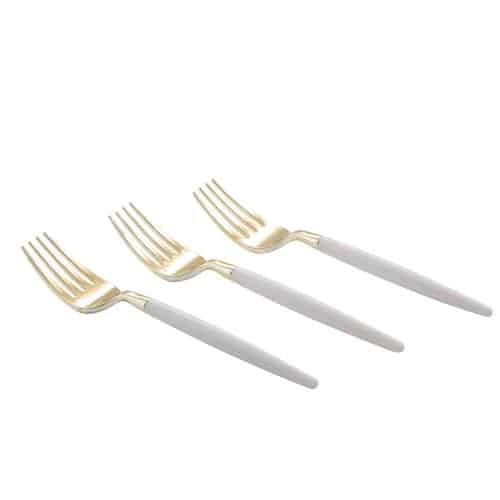 You don’t need much. A stack of dessert plates here and there. Can be real or disposable (see below for ideas). You are not setting a table. Include a stack with small forks and small spoons not far from the plates.