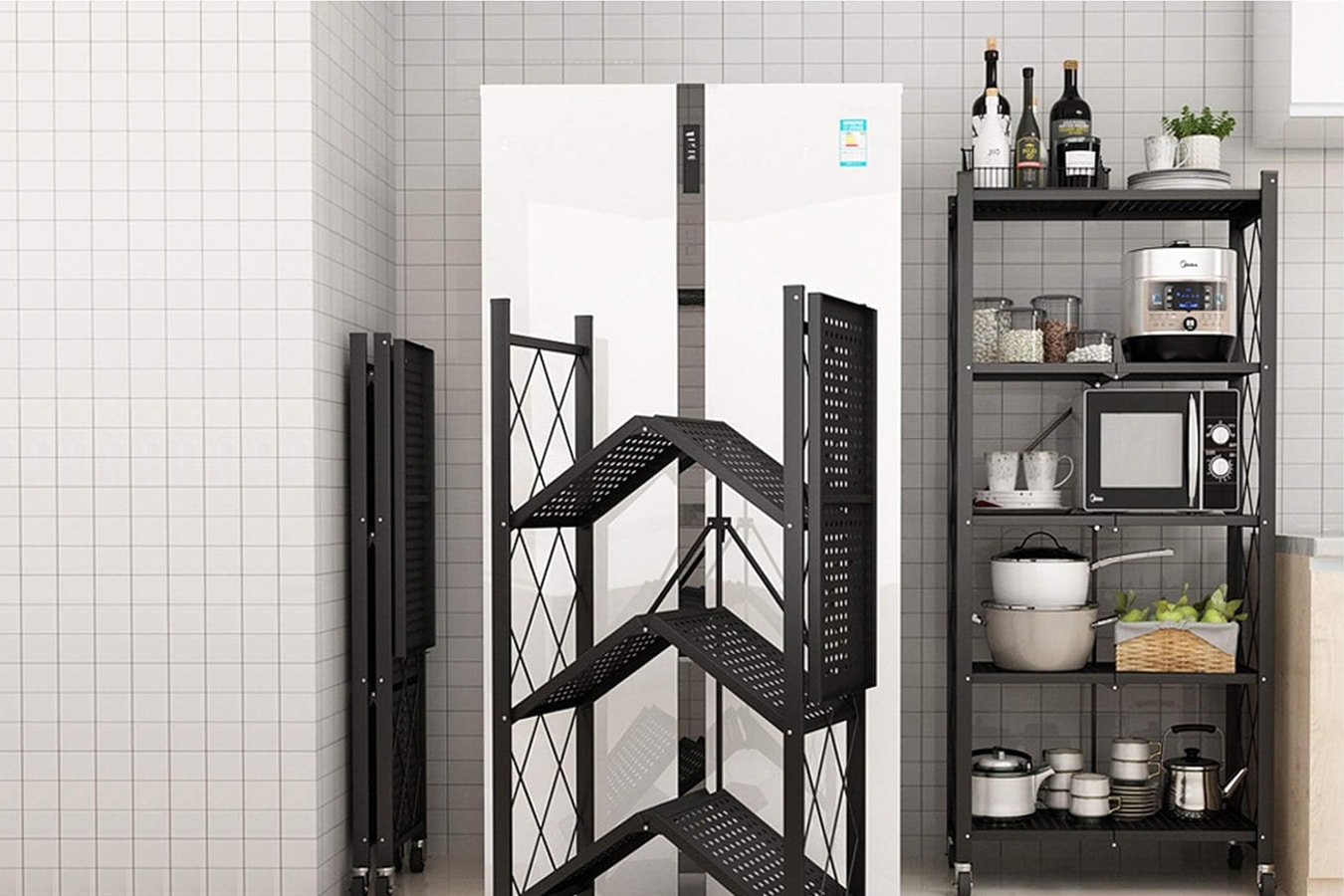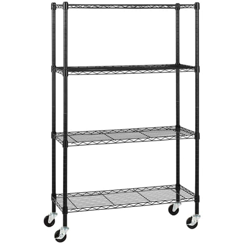 There’s no need to empty out your regular pantries. Take the easier route with a temporary setup with portable shelving like this.
