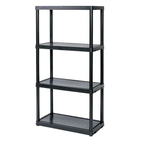 I use a plastic pantry with doors to prevent little kids from emptying out shelves. I have garage storage for it so I find this way better than the open shelves.