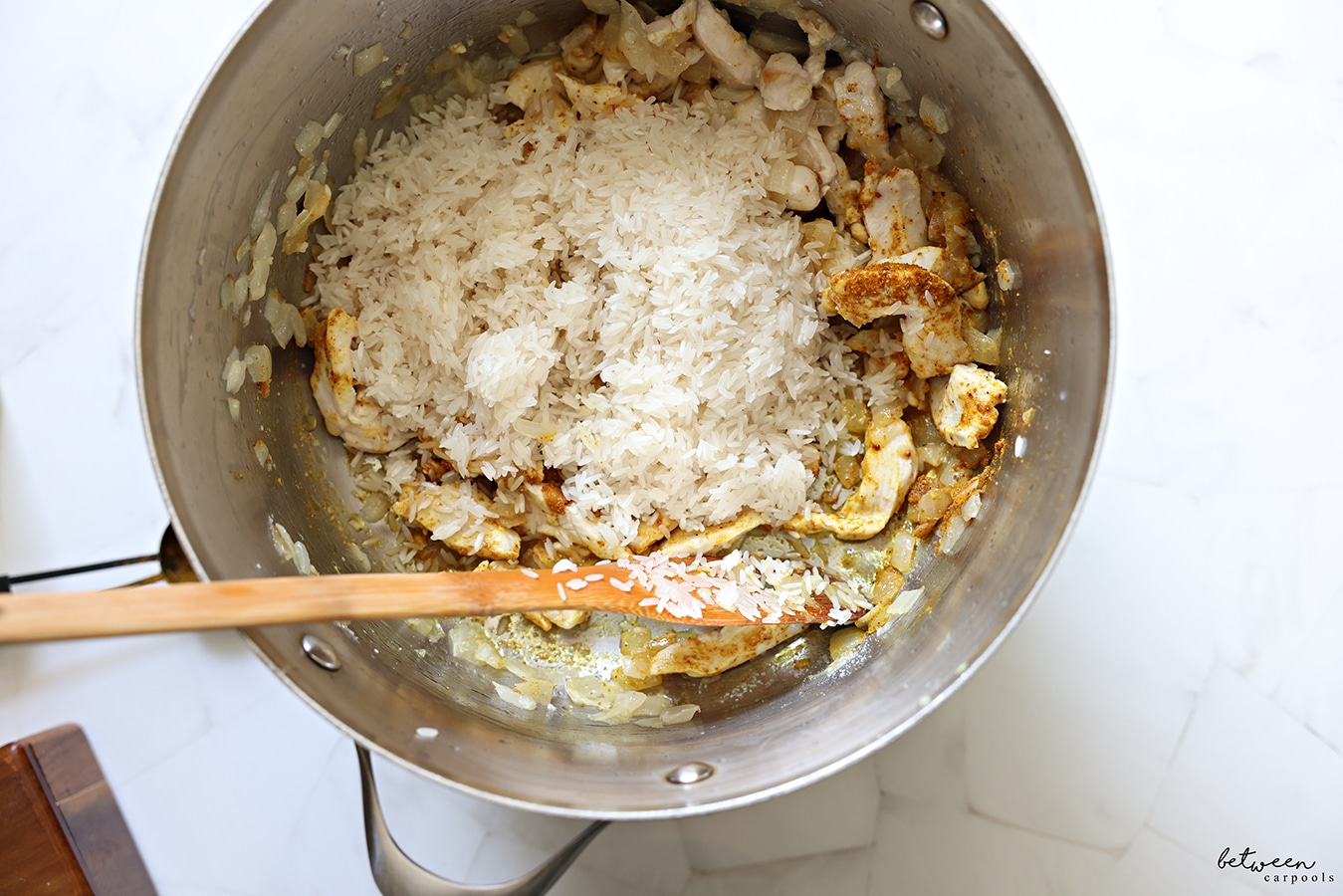 stir in the rice and let it toast for a minute.
