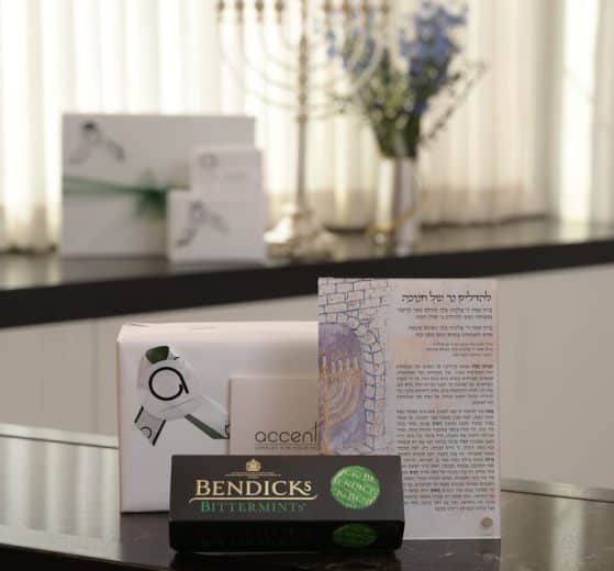 Did you find a great gift and want to make it Chanukah-themed? This year, Accents is adding doughnuts to their trays and platters, making the perfect gift perfect for Chanukah. Shop all of Accent’s Chanukah packages here (or WhatsApp Accents to create your own!), they come beautifully wrapped for a gorgeous presentation.