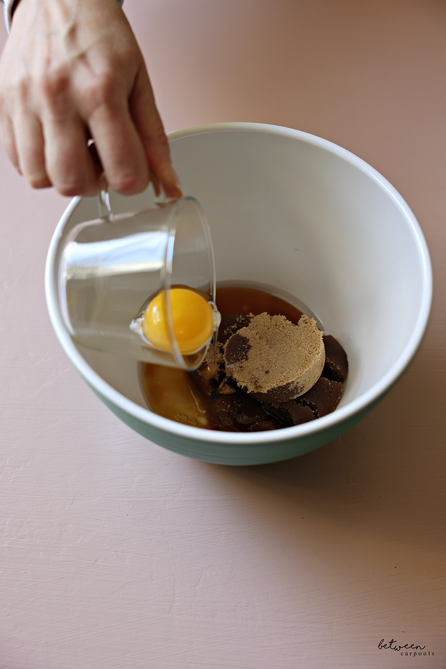 All you need is a bowl, a spoon, and a few minutes. Combine the oil, sugar, and maple syrup and mix well.