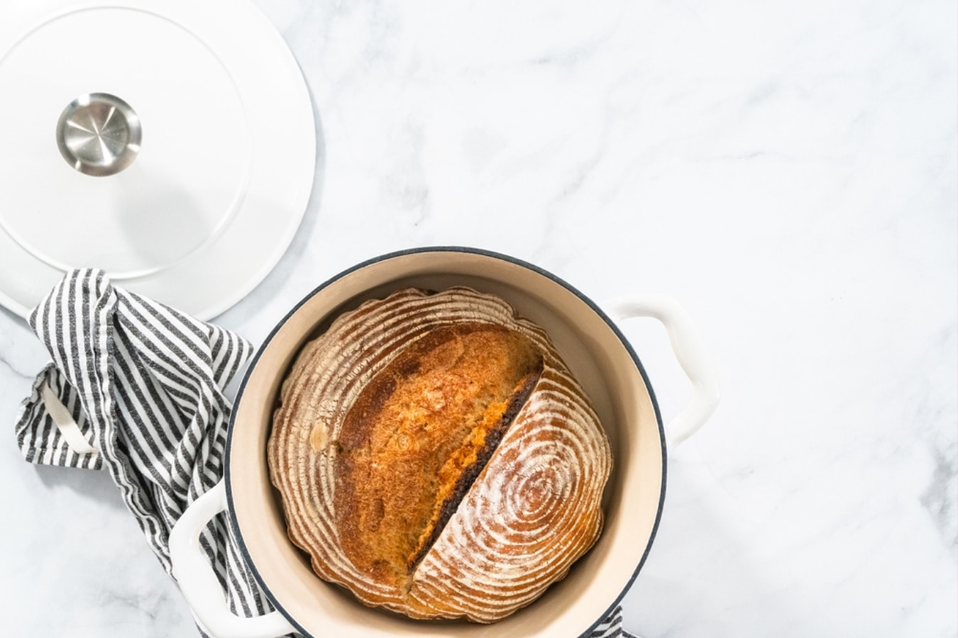 Hi! in an Instagram story from a while ago, you posted a pot for baking sourdough bread – but it wasn’t cast iron, it was something lightweight. I think it was maybe black with white speckles/flecks. If you remember, would it be possible to post the link or the name of the pot? thank you!!