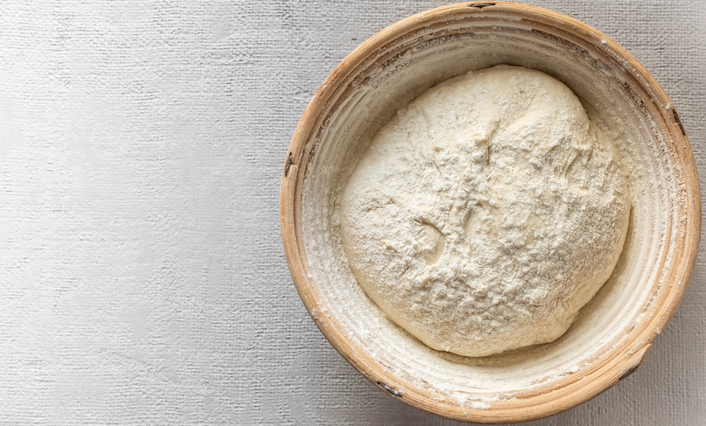 Flour your banneton or overlap 2 pieces of paper towel and sprinkle with white rice flour. Transfer your boule (your round ball of sourdough) to the banneton seam side up, cover (with a disposable shower cap), and refrigerate overnight 12-18 hrs. You can let your dough ferment at room temperature but I find the overnight chill much more beneficial for flavor development and dough handling .