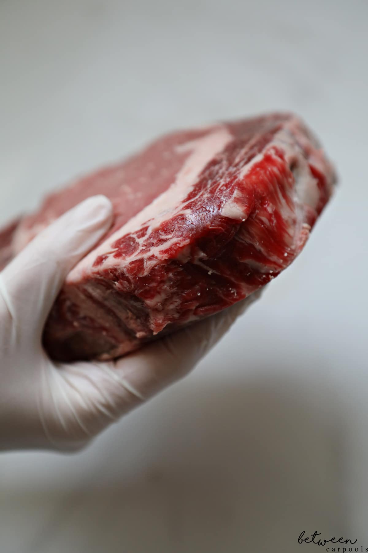 Once the time is up, you can give the meat a quick sear for about 30 seconds on each side in a very hot skillet with very little oil. This is by no means necessary, it just gives the meat a ‘finished’ look. I usually skip this step when prepping the meat for Shabbos, but do sear when it’s for dinner. If you sear, be sure to first pat it dry with a paper towel really well before searing.