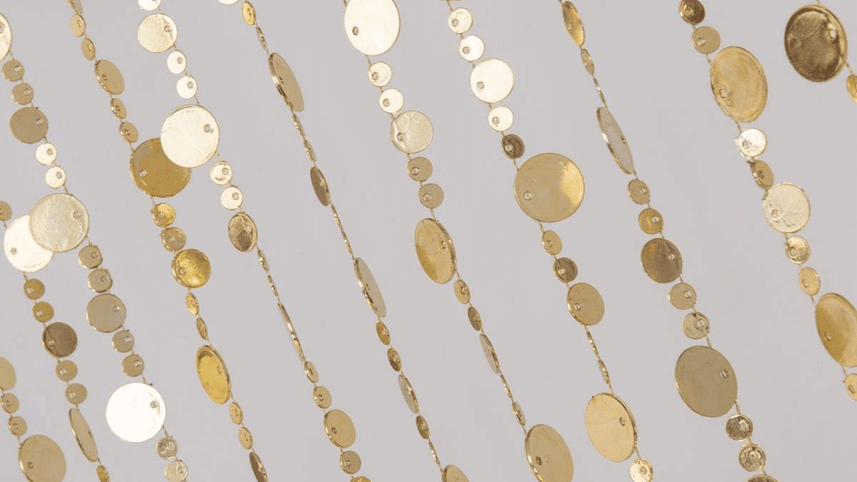 Gold Bubble Beaded Curtain This one might be easier to hang, depending on the type of sukkah you have (available in silver as well).