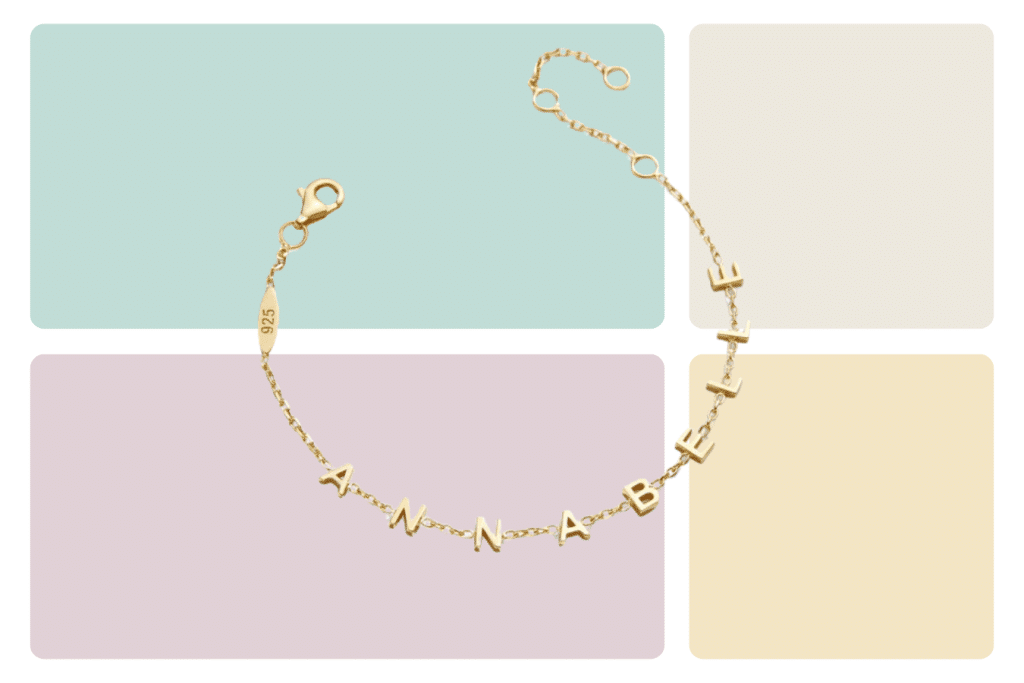 Bauble Bar has the cutest range of custom jewelry. For something more classic, this Gold Vermeil Custom Name bracelet is pretty and dainty. If you don’t have time to wait, there’s a big selection of initial jewelry which ships immediately.
