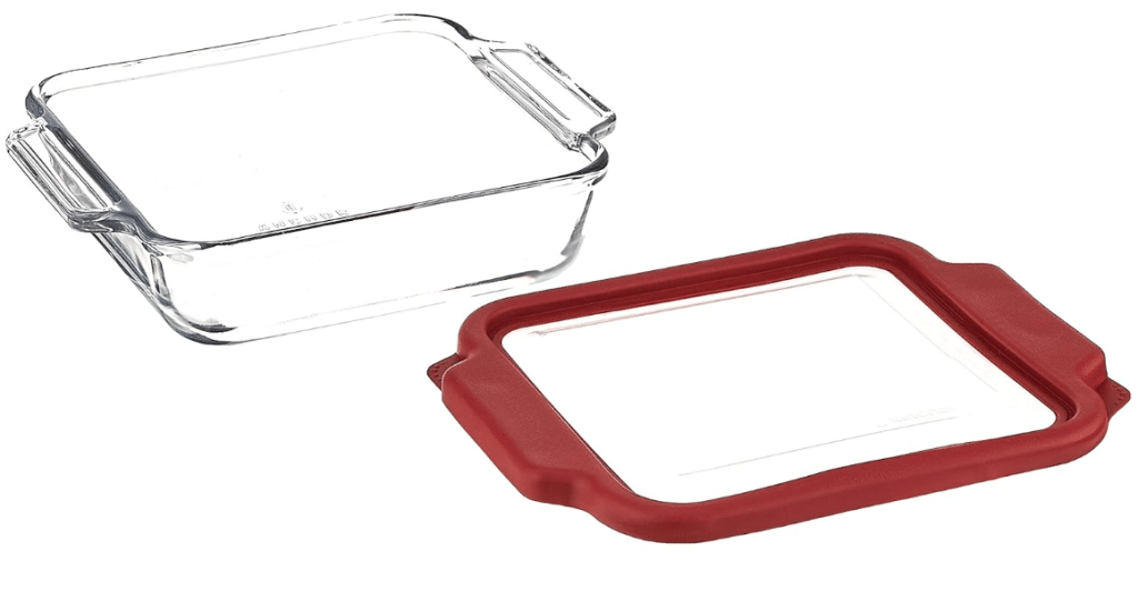 The original 9×13 Pyrex, with a lid. Cannot ask for more. Think peanut chews. Now you can hide them!