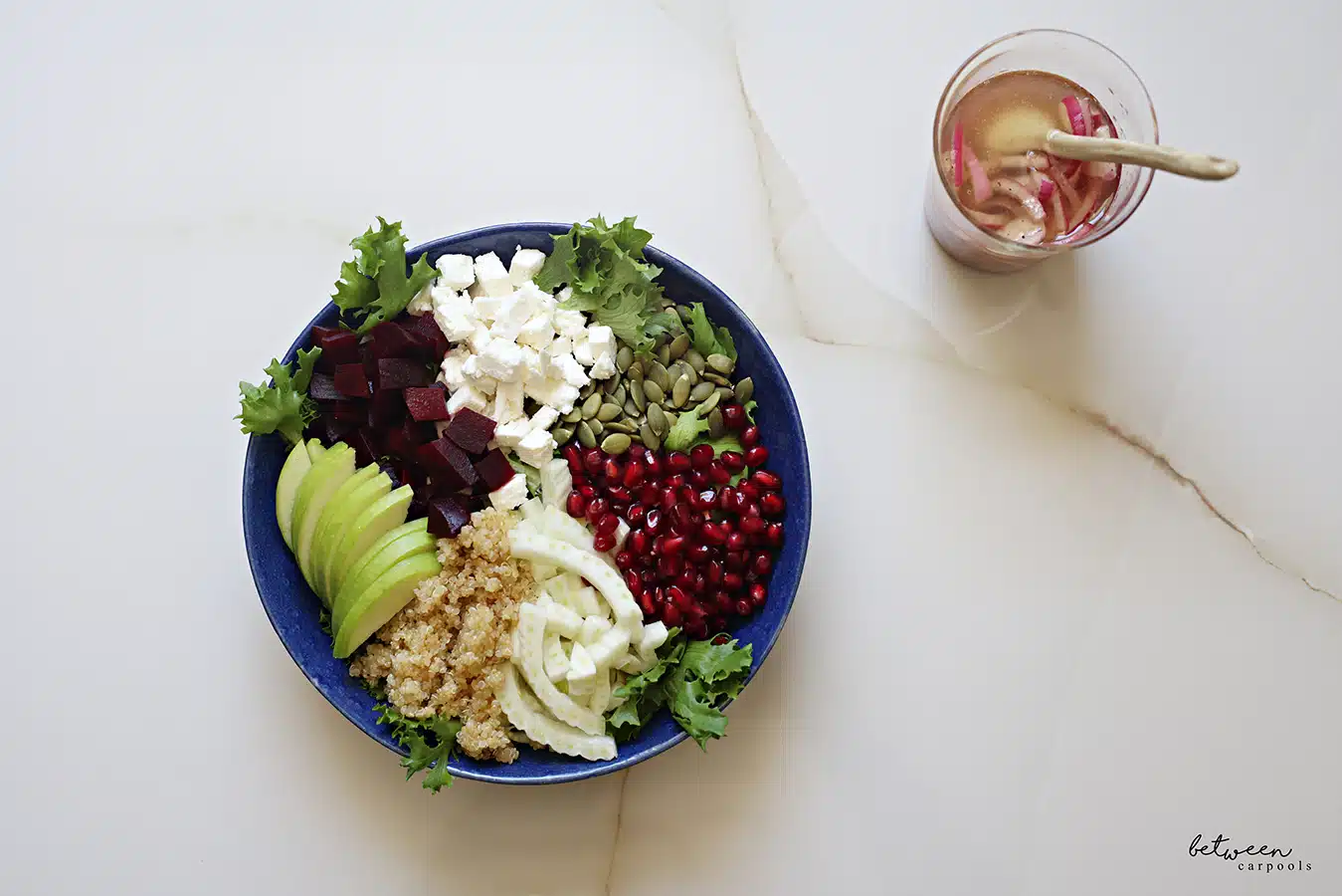 This salad just hits the spot. The quinoa makes it filling, the asian pear or apple adds that burst of freshness and the fennel just…works. Oh, and feta in salads is always a winner.
