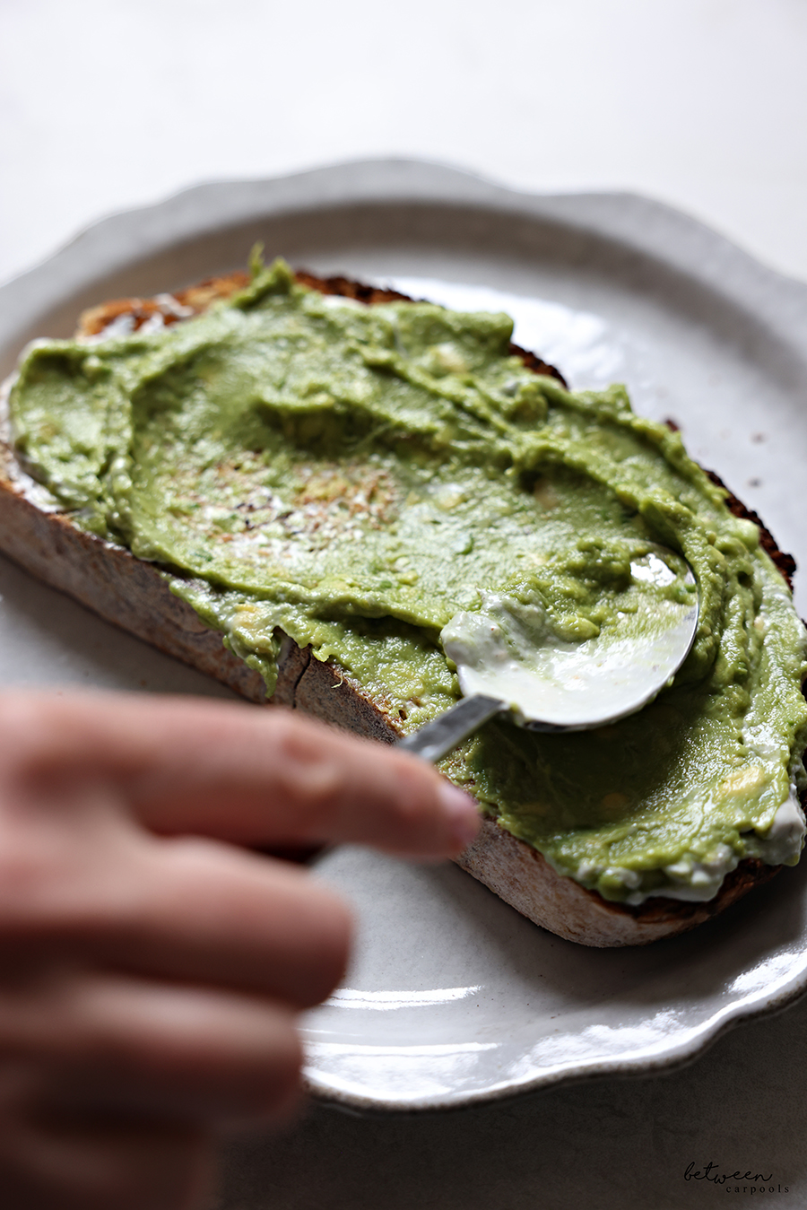 Start with a nice thick slice of freshly toasted sourdough.