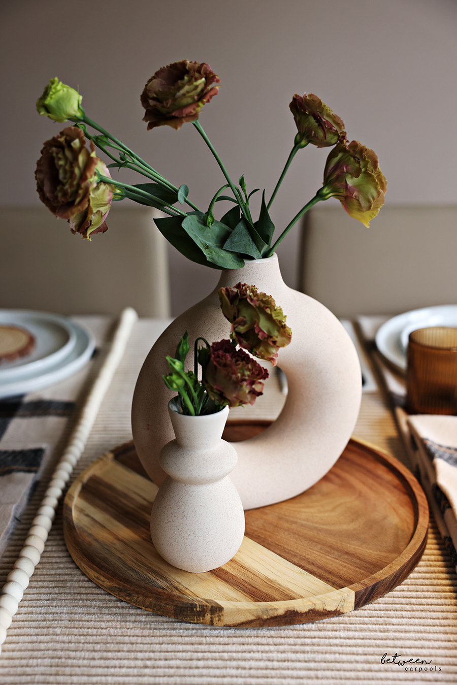 The centerpiece is our favorite H&M Stoneware Vases – they’re so well-priced and it doesn’t take a lot of florals to fill them (do you own them already? Take them back out!) H&M always stocks different interesting, organic stoneware vases at nice prices. Mix and match them.