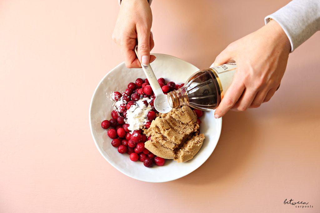 Now, cranberries on the other hand, are always in season, that is, in the freezer aisle. Now I know what you are thinking “Shall I use fresh cranberries if I see them? They are in season now!” but I will advise against it. Somehow, they take longer to soften/bake and are so tart, you will need to double the sugar and we don’t want to do that, do we?