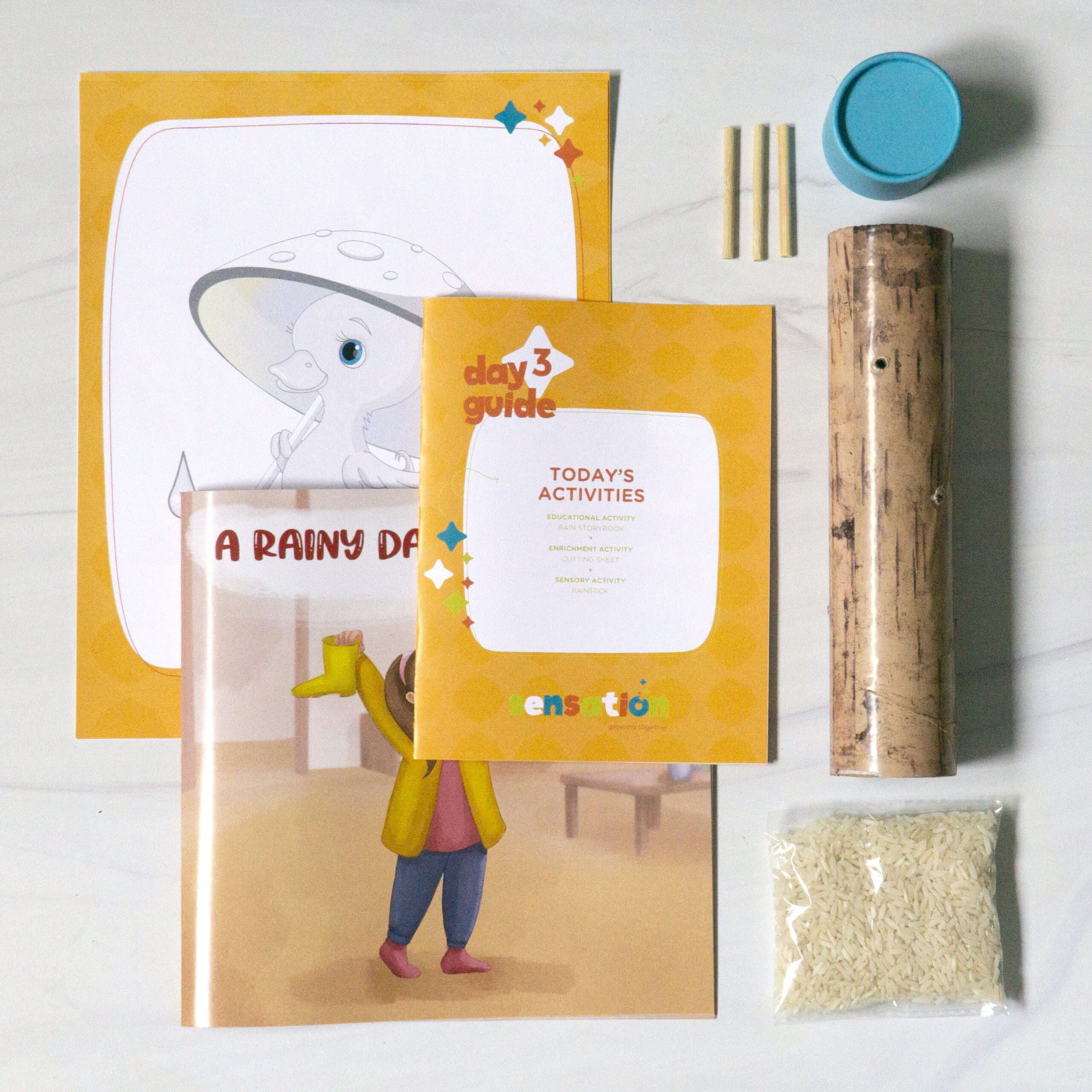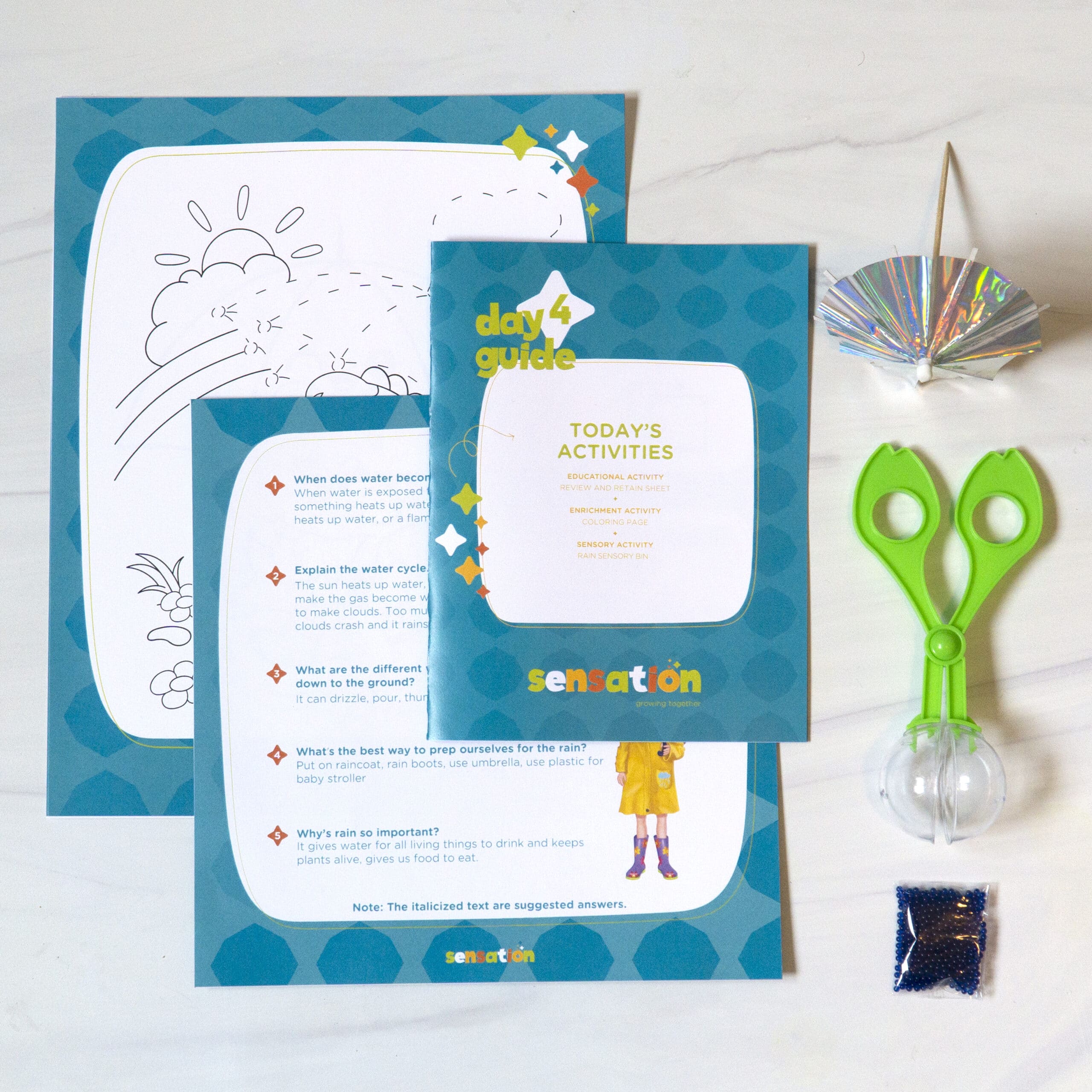 The brainstorm resulted in Sensation Play Kits. Now let’s tell you all about these amazing kits! Besides being educational and fun, they help parent and child bond in an easy way. Every week, Sensations sends a new play kit with a new topic to learn about! There’s different activities to do everyday as your child learns about the topic and becomes knowledgeable about the world around them.