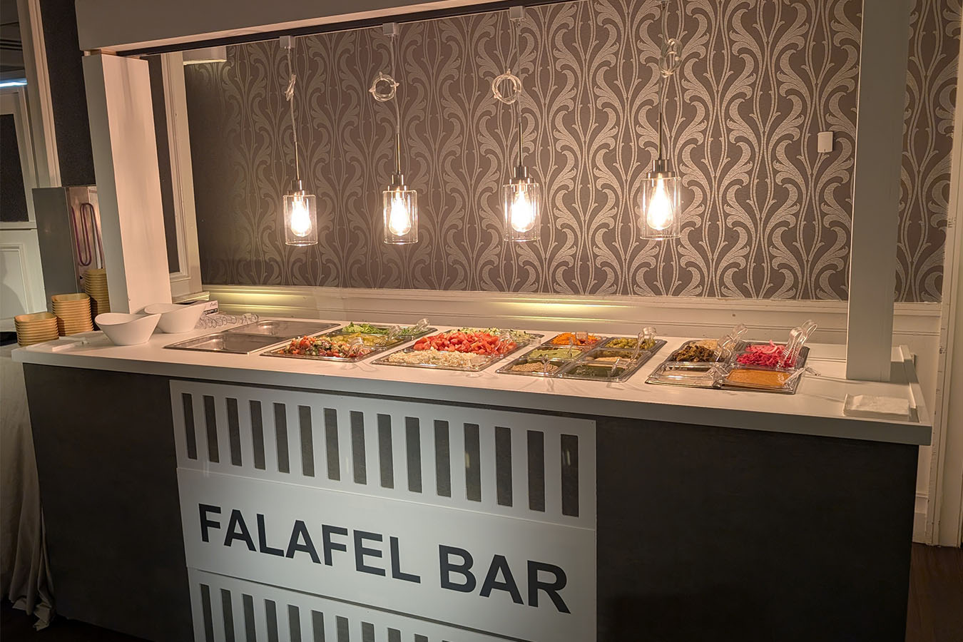 Brand new to The Kugel Shoppe? Their movable falafel station! This is perfect for your simcha, party, or even office lunch. Such a fun concept, this is going to be a crowd favorite. Call 908-76-KUGEL, WhatsApp at 732-300-5921, or email at info@thekugelshoppe.com to order the falafel station!