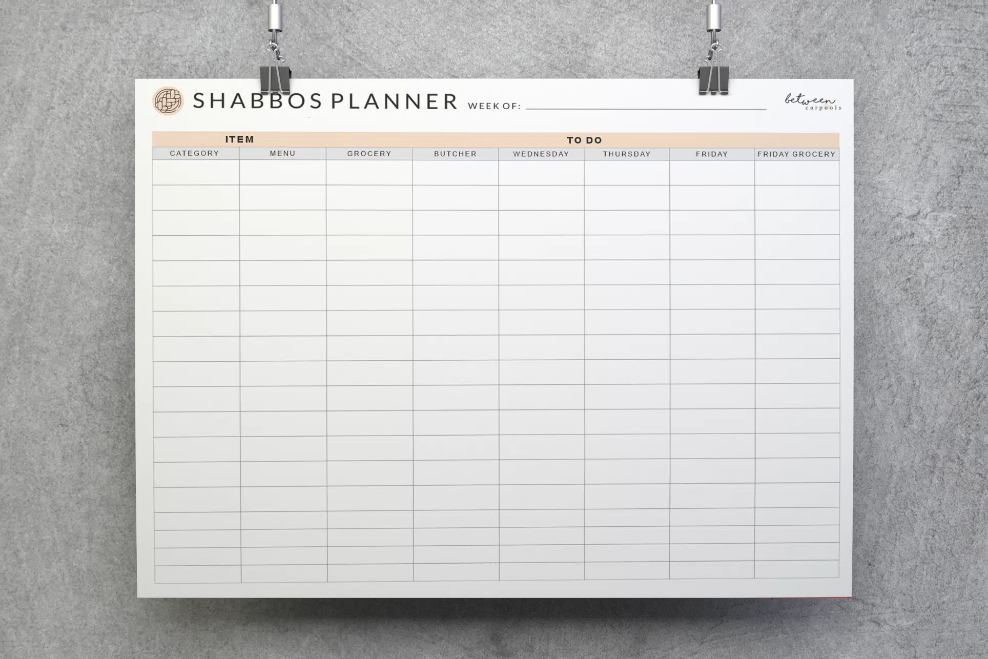 love it! ever since victoria posted a similar method using sheets online, I’ve been using it to plan every single Yom Tov! Total game changer and love that I can easily go back to the previous year to check it out! I use your other Shabbos planner every week, it’s also great with the grocery list and day by day boxes, love that it’s organized according to meal component. Thanks so much for improving Shabbos and Yom Tov prep for so many!!!!