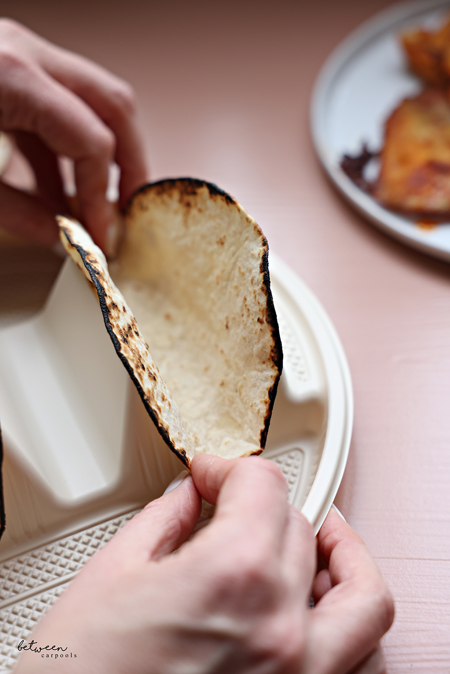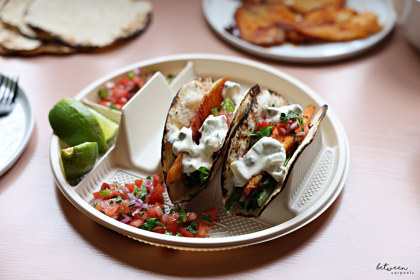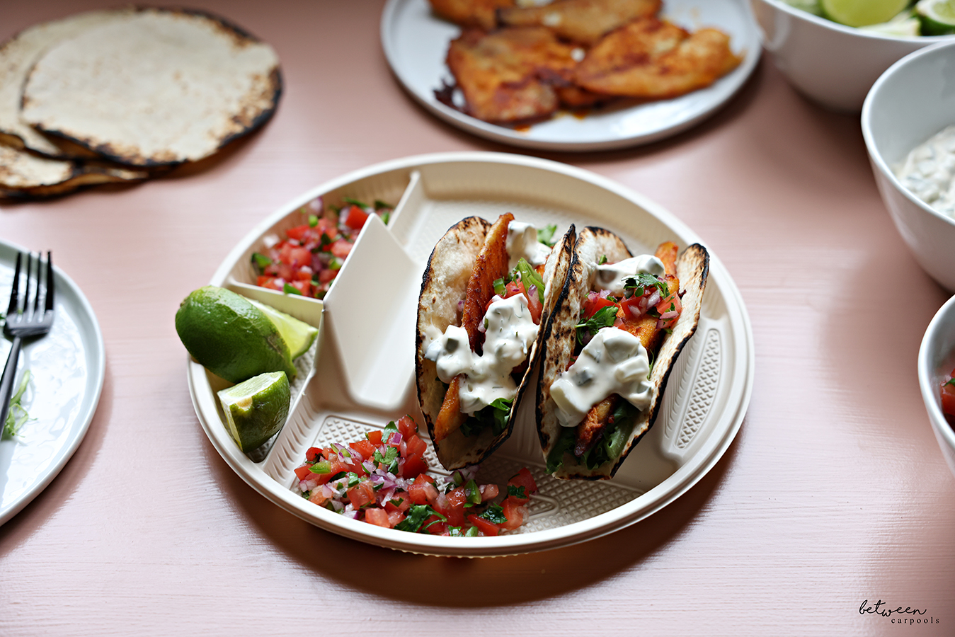 I imagined my guest helping themselves at my tacos buffet and wondered how they would fill the tacos while holding a plate, standing, in front of all the options.