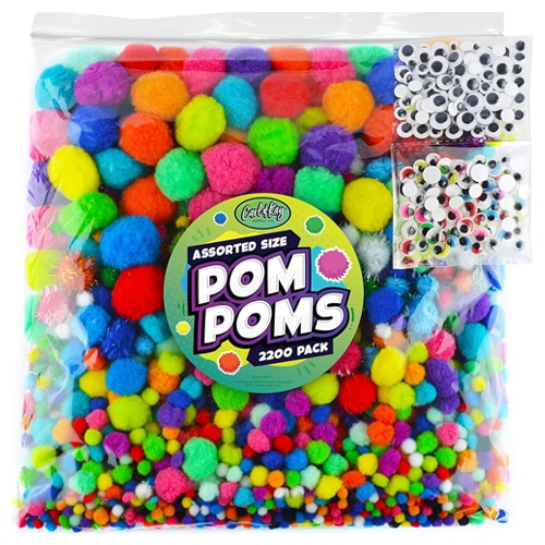 Then use a glue gun to glue on the pom poms! You can even let the kids do this. Finally, glue gun on the balloons and let the kids have lots of fun at a party created just for them!