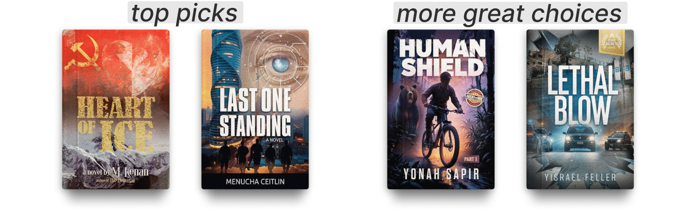 by Menucha Ceitlin – An English-first Agent for Hire (Yonah Sapir) takeoff, with all of the high-speed action and behind-the-agent humanity that teen boys have come to love. The Golans are a family of warriors, complete with the trauma, absences, memories, and secrets that come with a life of service. When Lior’s former victim lures him into a web of danger and alliances to protect his family, his brothers step up. There are befuddling connections and suspicious cover-ups, but the answers lie within the family. - Human Shield 1 and 2