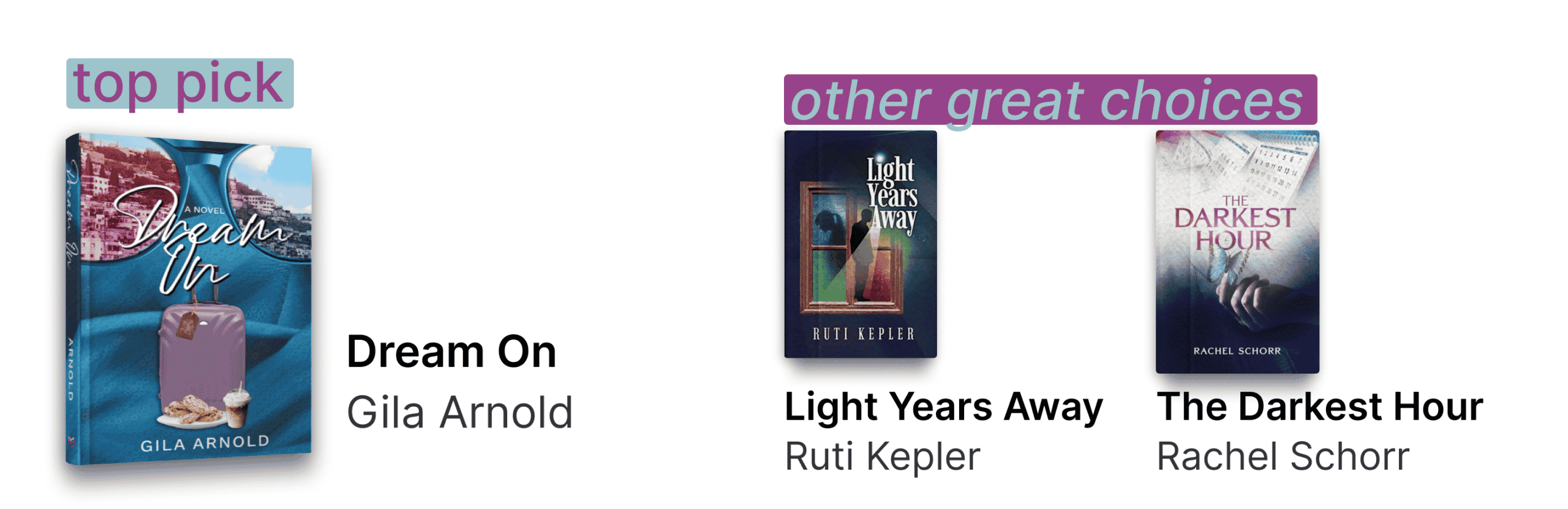 Light Years Away You can purchase here. by Ruti Kepler – Light Years Away has developed a “Love it or hate it” relationship with readers. Fans love the bold, fresh plot and nuanced characters who experience complex character development when their fiery ideals of Kollel and Kedushah come face to face with real life. Other readers shied away from the niche conflict and prominent “lesson” that framed the plot.