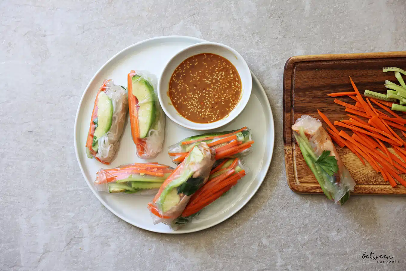 Call them summer rolls, Vietnamese spring rolls or salad rolls – either way they’re light, they’re fresh, and they make a gorgeous appetizer. Or a lunch for you. Or a special occasion addition to dinner. Or a fun DIY meal with the kids. There’s so many ways to enjoy them.