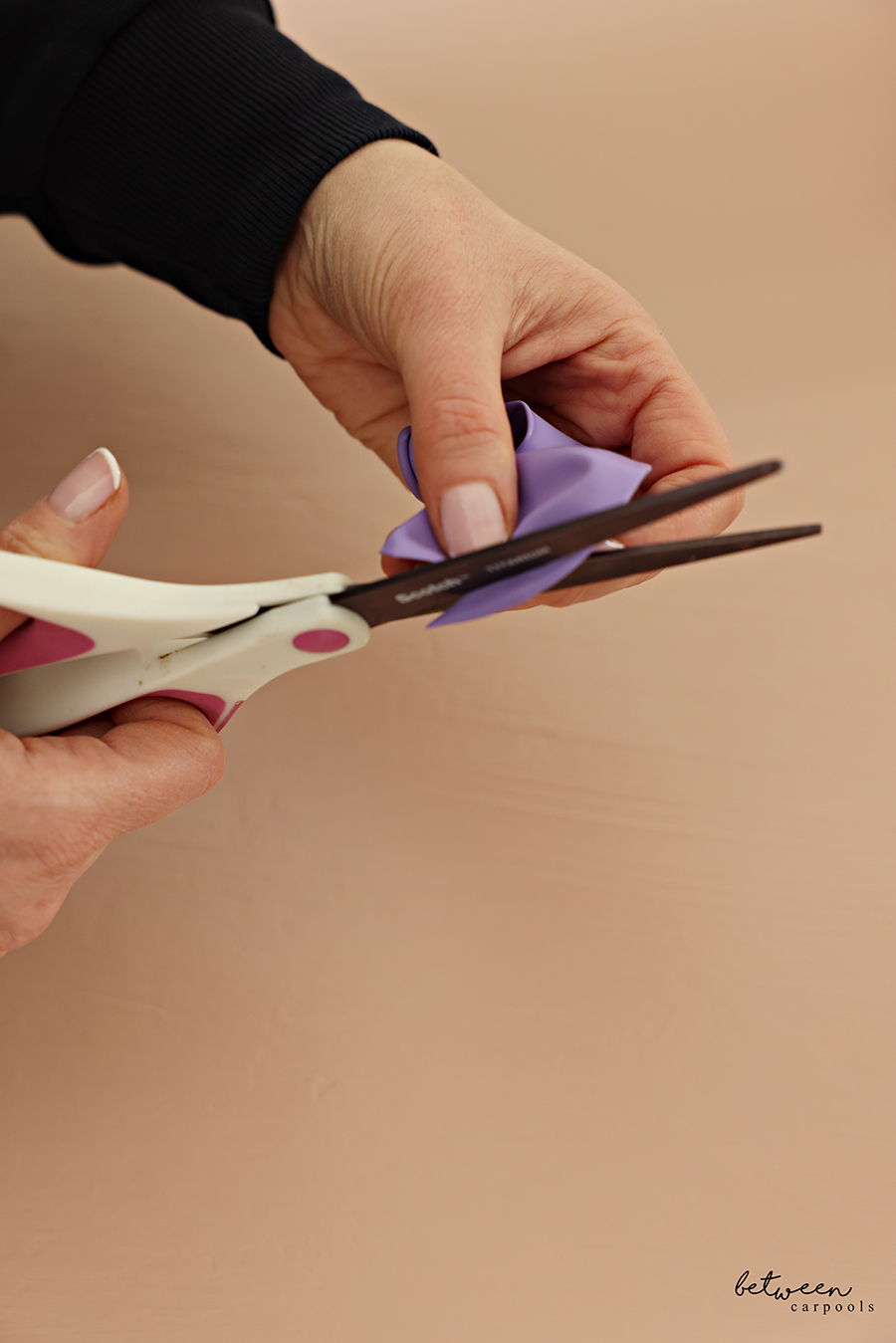 Here’s a solution that will make the project all the more fun! You’ll need one balloon per cup. Start by cutting off the top half of the balloon.
