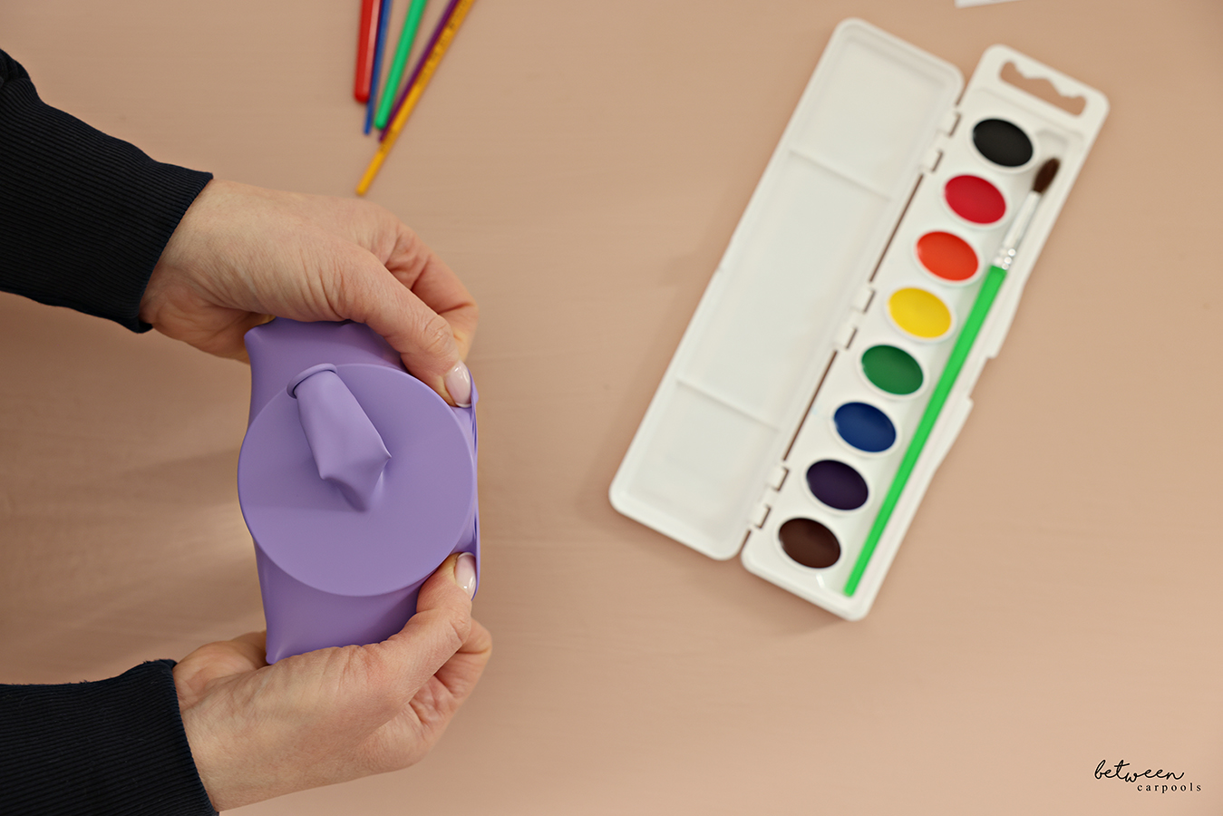 Do you know that cup of colored water that inevitably gets knocked over whenever your kids are painting? This hack solves that.