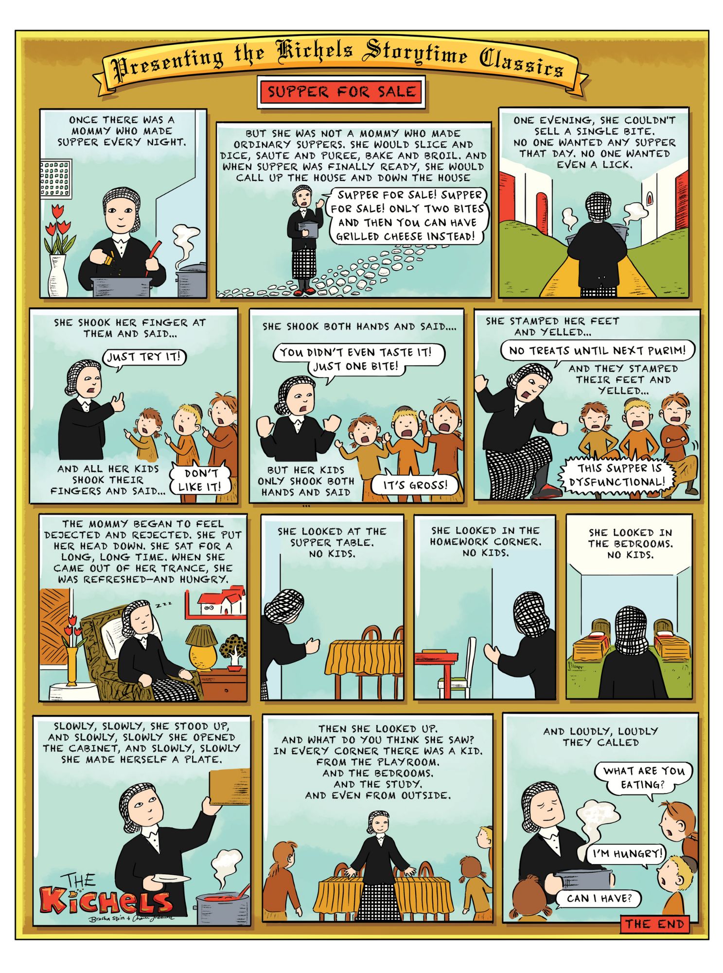 There was one thing I knew for sure. I wanted to enjoy my Kichels in peace and quiet. Not with a teenager looking over my shoulder. Because the Kichels are one of those joys in life. Is it the opportunity to laugh at the quirks of our lives, feel like “that doesn’t only happen to me?” and feel very, very validated. The Kichels shows us the funny nuances of our days in a way that no one else ever can or has. Creators Bracha Stein and Chani Judowitz are, frankly, quite brilliant and we hope they keep writing Kichels strips for years to come.
