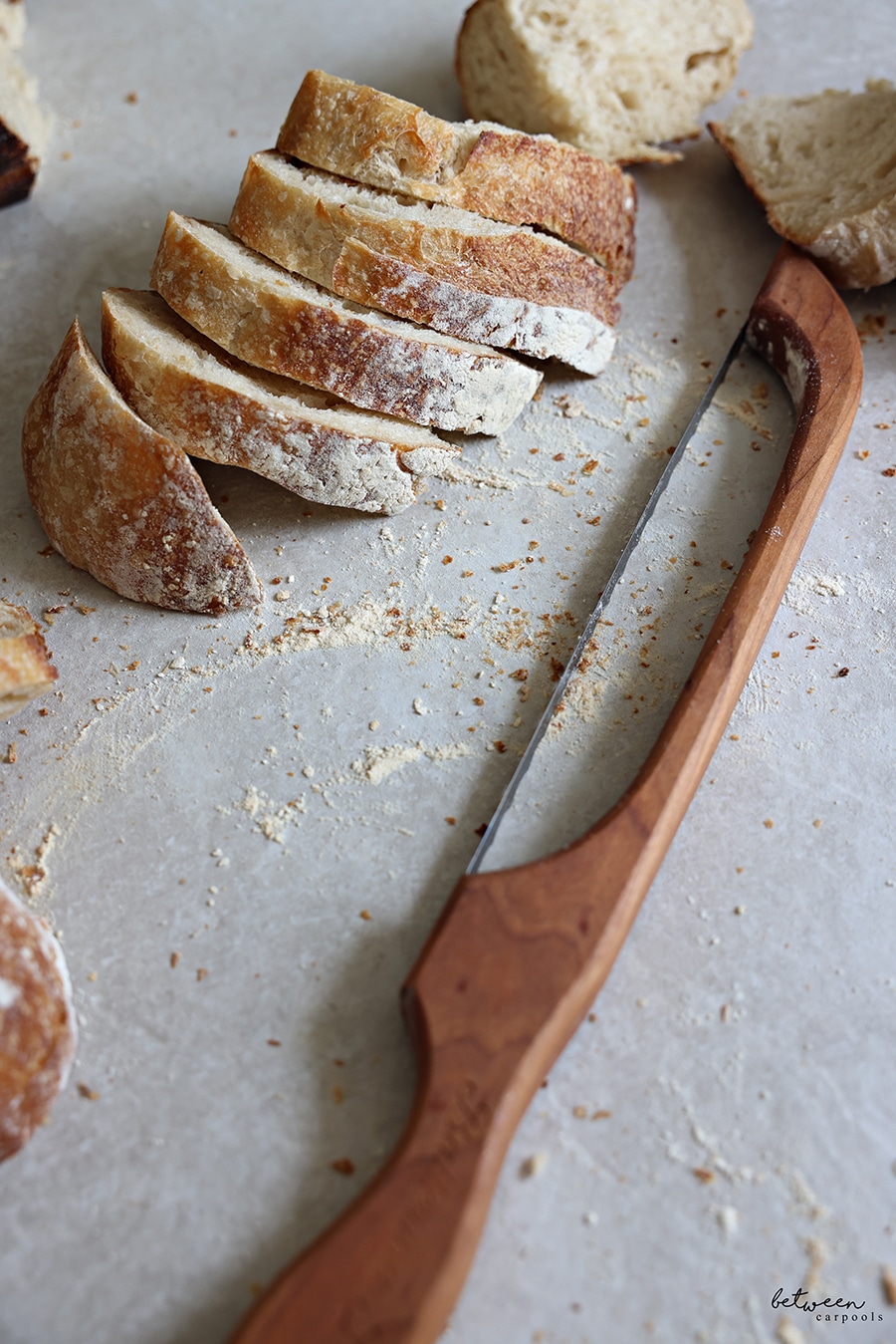 We use the mercer knife too. Always be careful! It’s not the prettiest but you can’t sacrifice pretty when you’re cutting such crusty bread