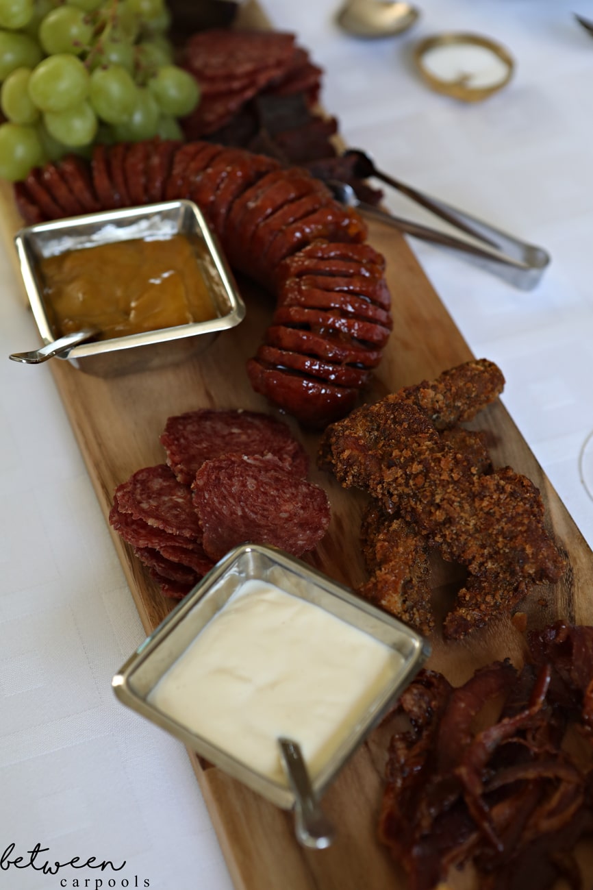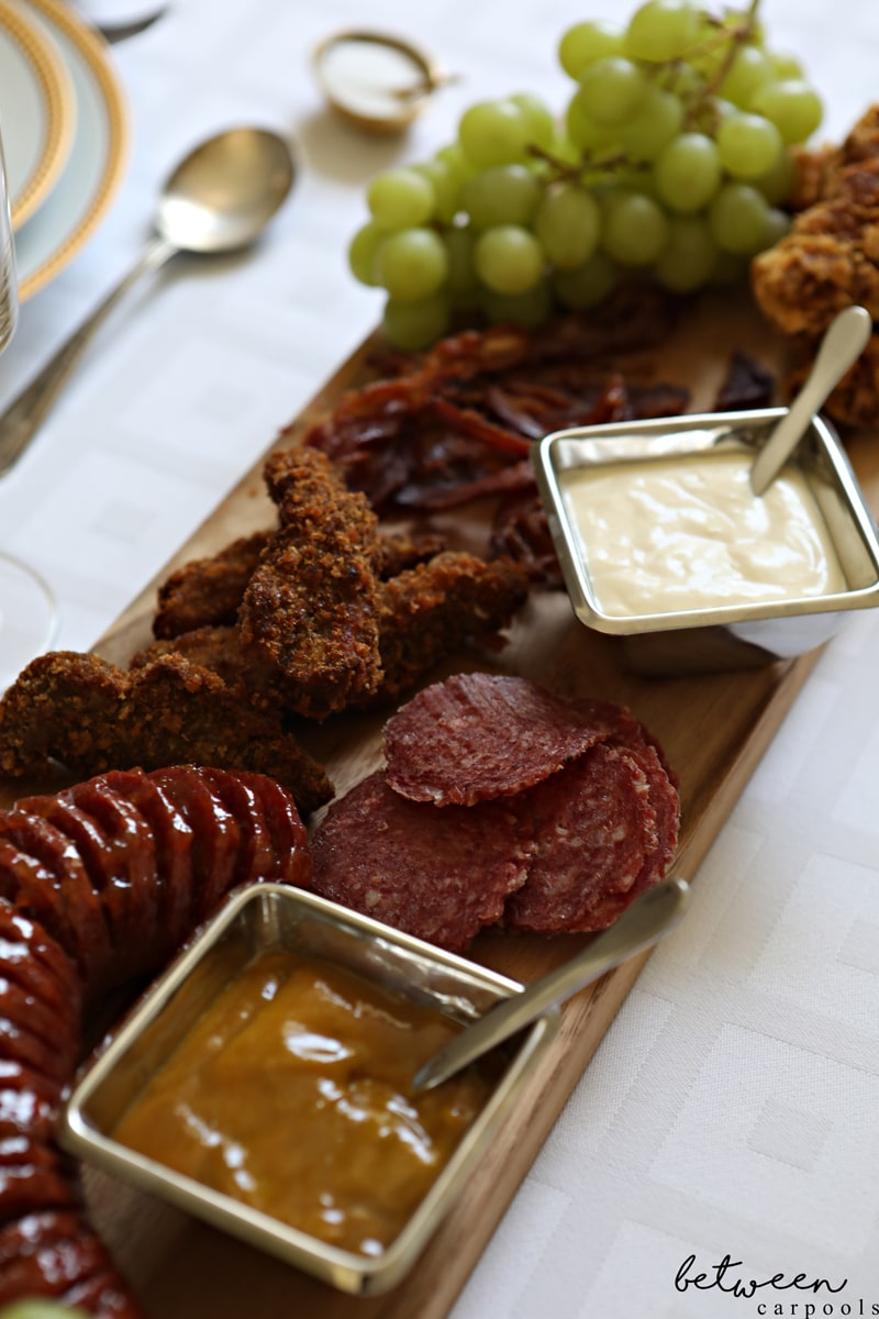 Traditionally, the word “charcuterie” refers to different types of preserved meats. We loved the concept (variety is fun!), but wanted a version that was more family-friendly and perhaps more budget–friendly too. It’s really fun for everyone to choose what they like.