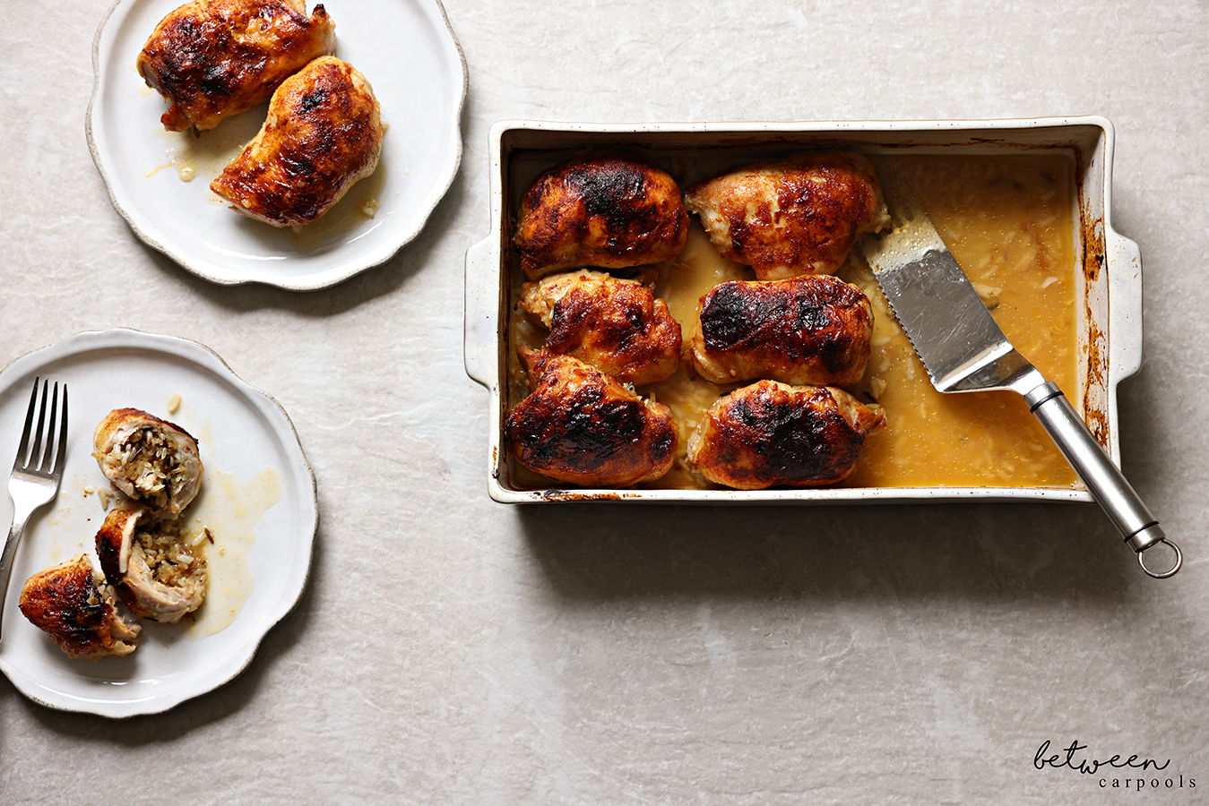 We realized, from that conversation, that we do not have a basic recipe for this dish. Many of us have stuffed chicken with kishka or perhaps pastrami. But, we were looking for something a bit more sophisticated, but still easy.