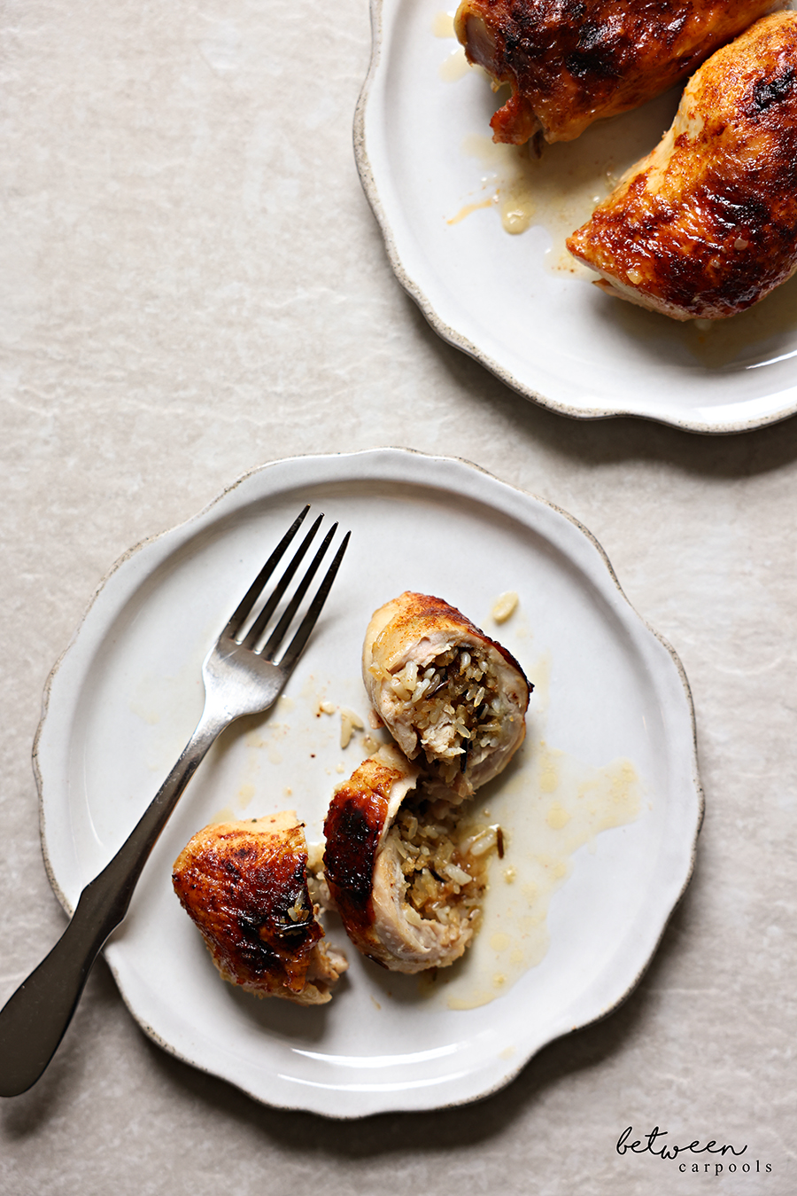 You might call these chicken capons. Whatever you call them, this Wild Rice & Herb Stuffed Chicken is the perfect chicken to plate this Yom Tov.