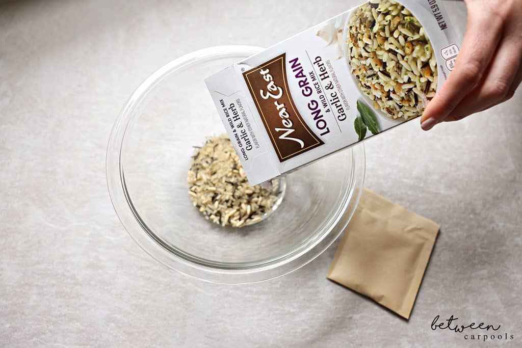 - 1 (6 oz) box Near East Long Grain and Wild Rice Mix Garlic & Herb (with the seasoning mix)