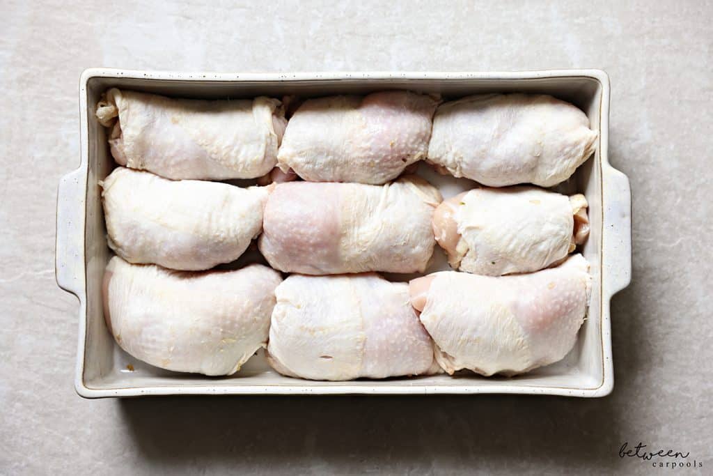- 8-10 boneless skin-on chicken thighs, also known as chicken capons