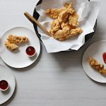 Heat 2 inches of oil in a saute pan. Fry the nuggets in batches until golden and cooked through (they stay pretty light). Serve with Tangy Dipping Sauce (recipe below).