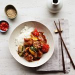 Heat oil in a wide pan or deep fryer. If the chicken batter seems too thin, add 1–2 teaspoons more cornstarch. Add the chicken and fry, breaking apart any pieces so they don’t stick together. Fry about 5-6 minutes, then drain, remove and set aside. When ready to serve, fry the chicken a second time for 2-3 minutes at a slightly higher temperature.