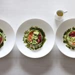 Season both the tuna and the salmon with a tablespoon each of olive oil and some salt to taste (about ¼ tsp). Season the cubed avocado with only salt.